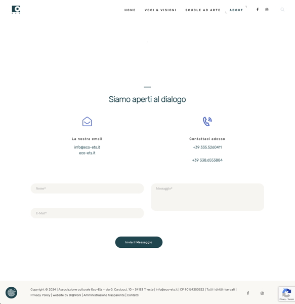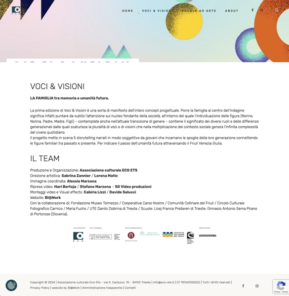 l’Associazione culturale ECO ETS è composta da giovani ricercatori e professionisti attivi nell’ambito della produzione video, del cortometraggio, del visual di comunicazione e del teatro. Attenti ai nuovi scenari della ricerca artistica trasversale – capace di connettere i diversi linguaggi della contemporaneità per narrare e inscenare tematiche collettive – si sono posti l’obiettivo di promuovere la cultura della condivisione sociale, con particolare interesse rivolto ai diversi punti di vista della nuova generazione.